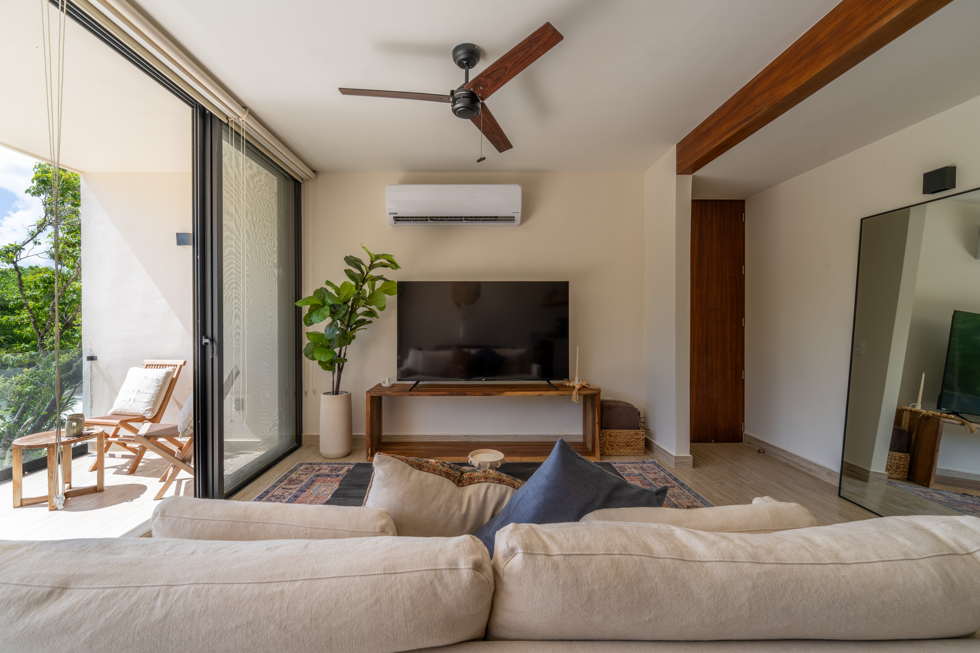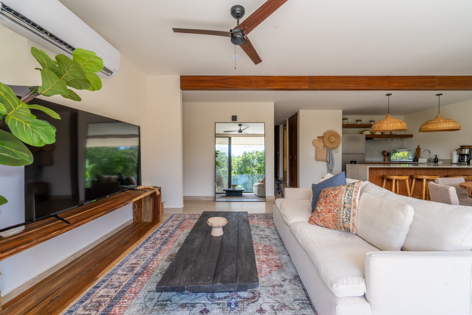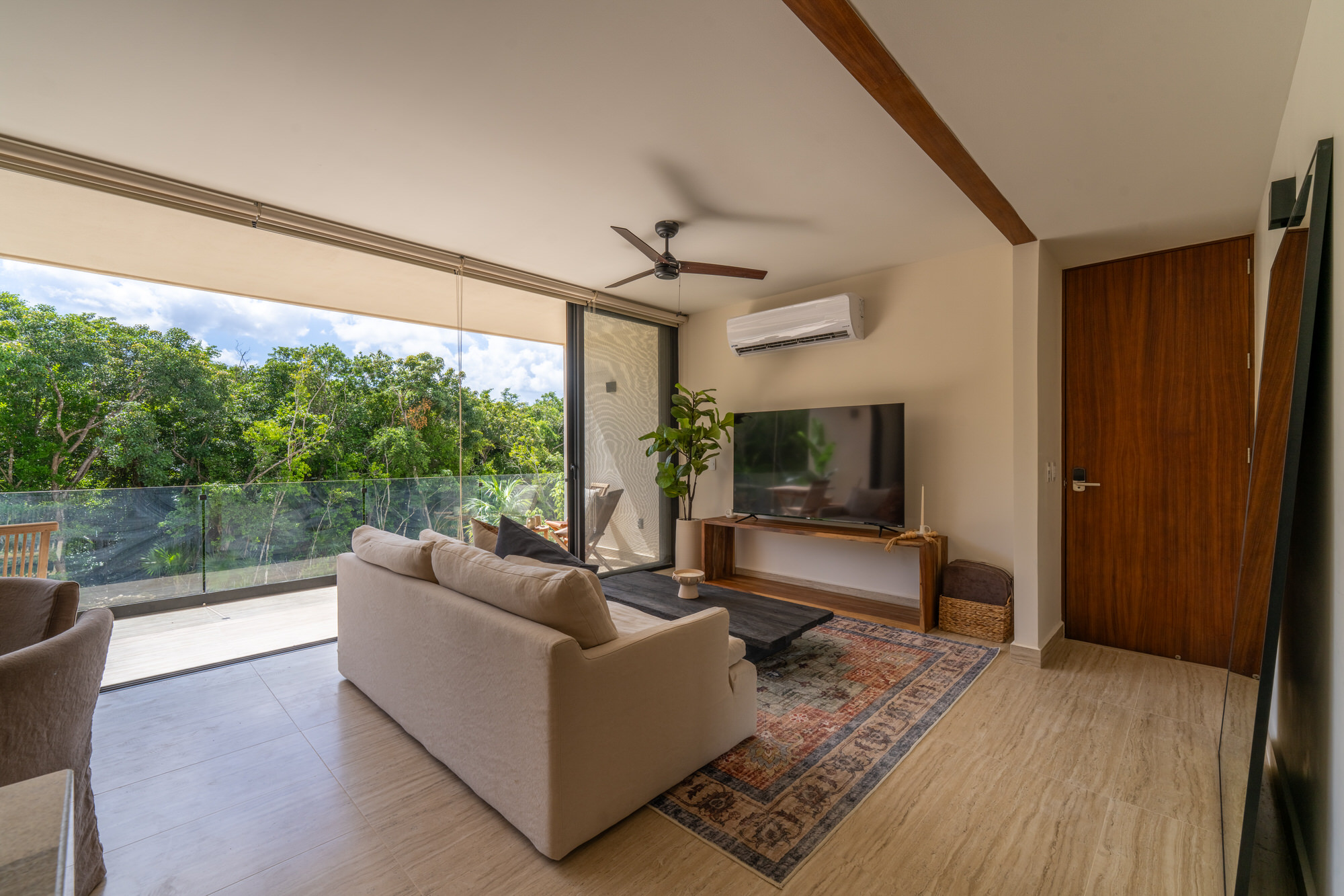 Imagine waking up to golden sunrises filtering through floorβtoβceiling windows, and winding down with spectacular sunsets over the jungle β all from your large private terrace. This unit is perched on the first floor, close to reception and common areas, yet feels like a secluded treehouse. Available May 1st for a 5βmonth lease.